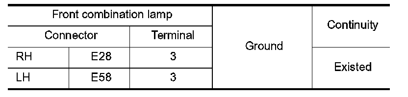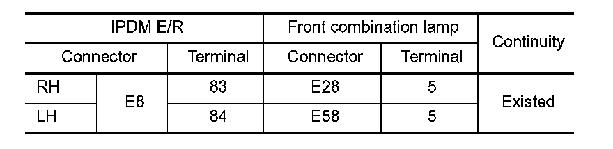 3. Check continuity between the IPDM E/R harness connector and the front combination lamp harness connector.