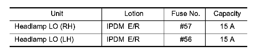 Headlamp (LO) circuit is connected to HID control unit integrated in the headlamp. Headlamp (LO) circuit turns xenon headlamp ON.