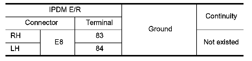 2. Check continuity between the IPDM E/R harness connector and the ground.