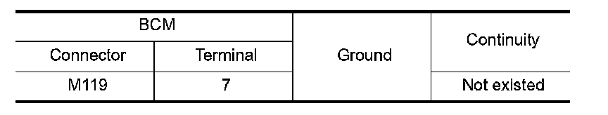5. With operating the test item, check continuity between BCM harness connector and the ground.