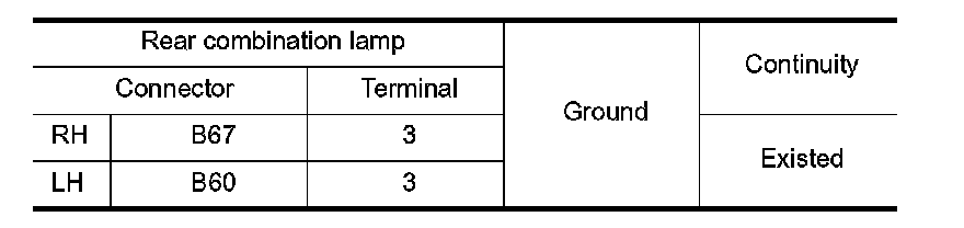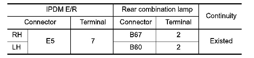 3. Check continuity between the IPDM E/R harness connector and the rear combination lamp harness connector.