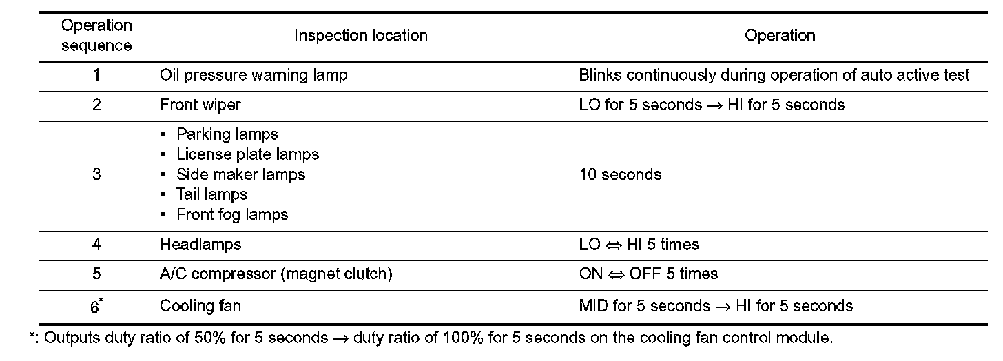 5. The oil pressure warning lamp starts blinking when the auto active test starts.