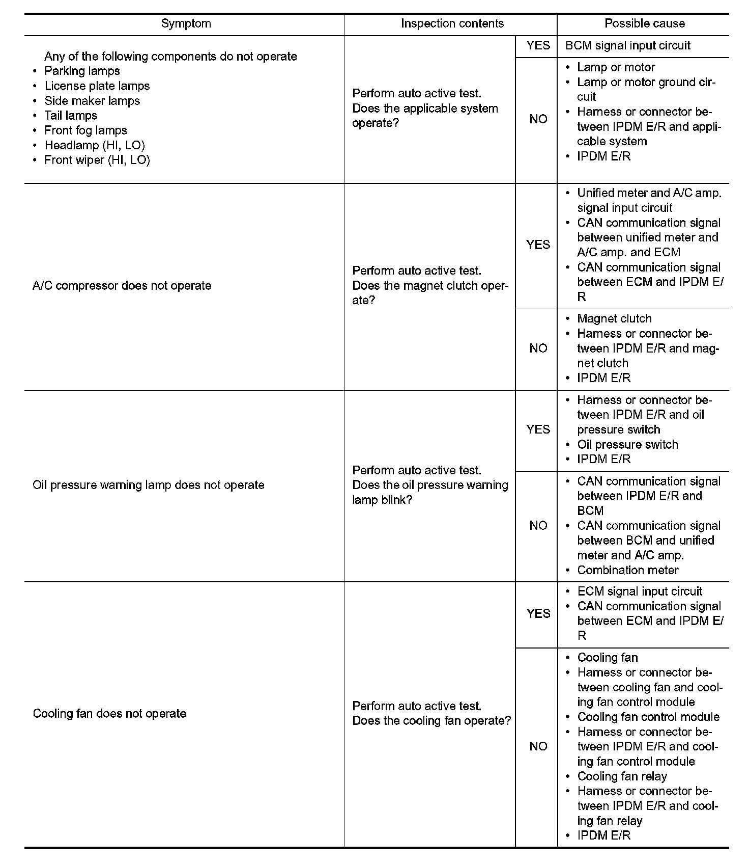 - The auto active test facilitates troubleshooting if any systems controlled by IPDM E/R cannot be operated.
