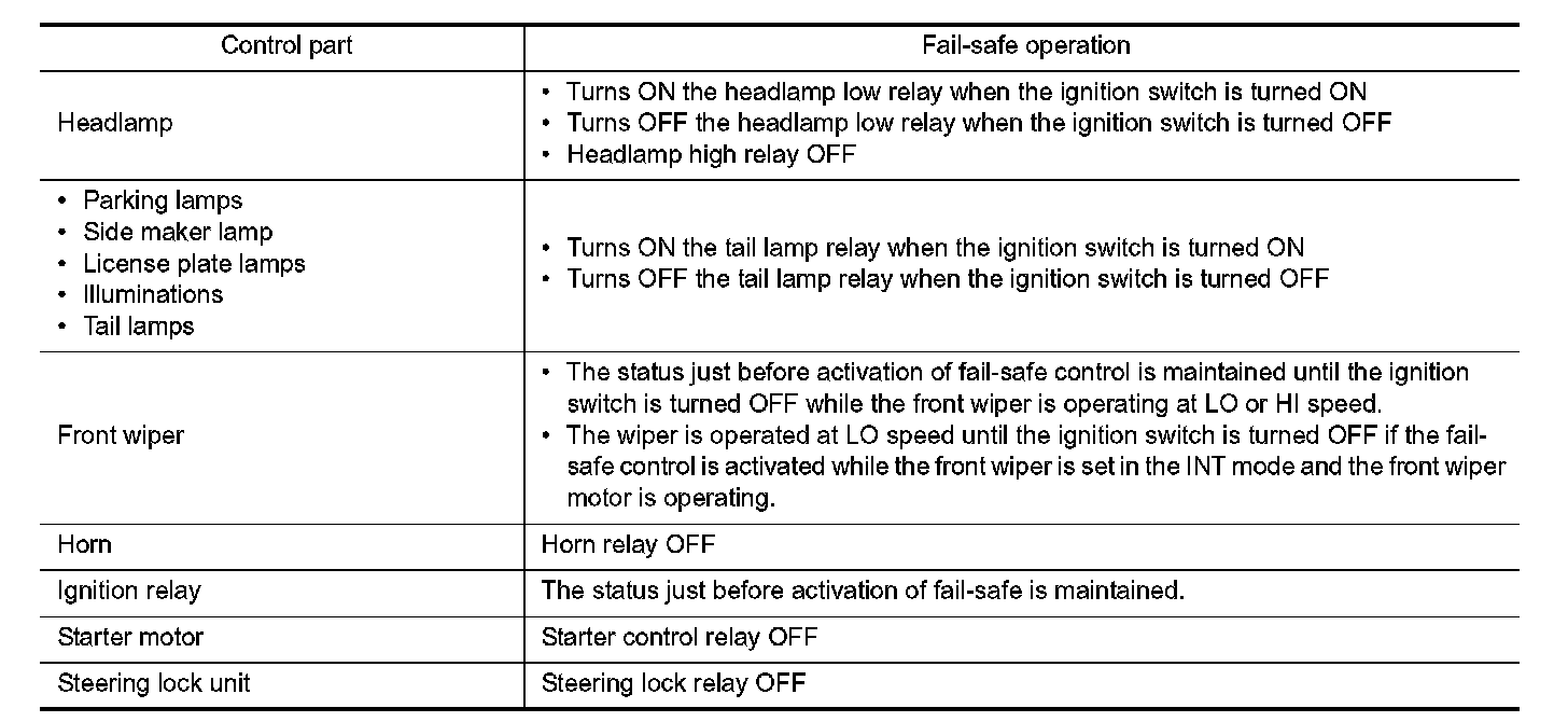 When CAN communication with ECM and BCM is impossible, IPDM E/R performs fail-safe control. After CAN communication recovers normally, it also returns to normal control.