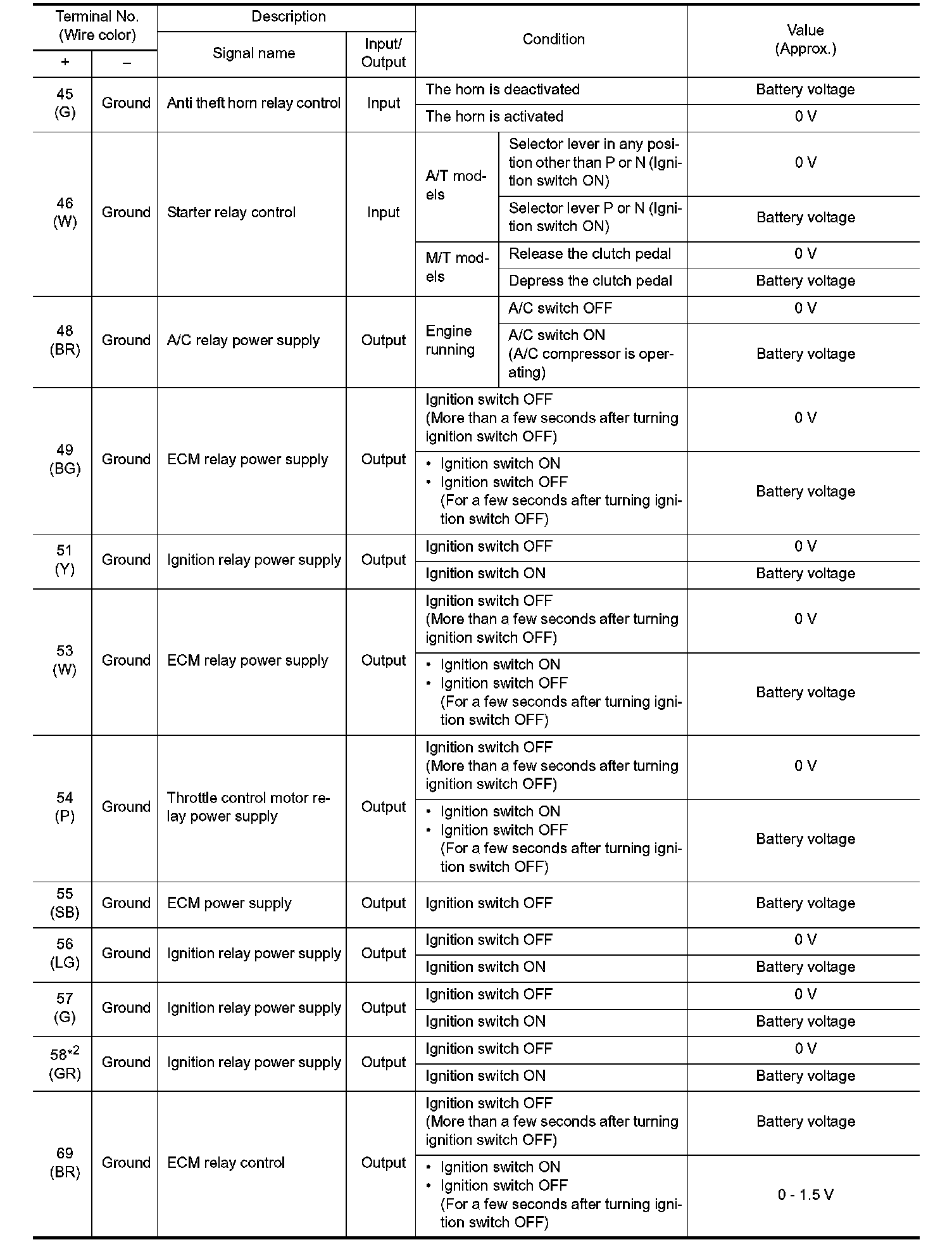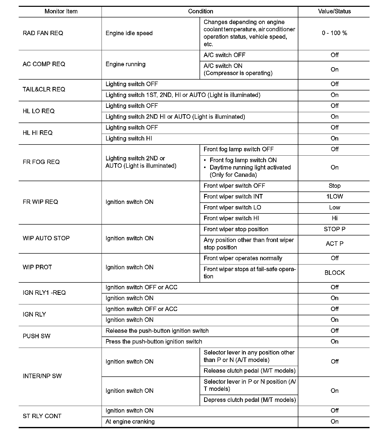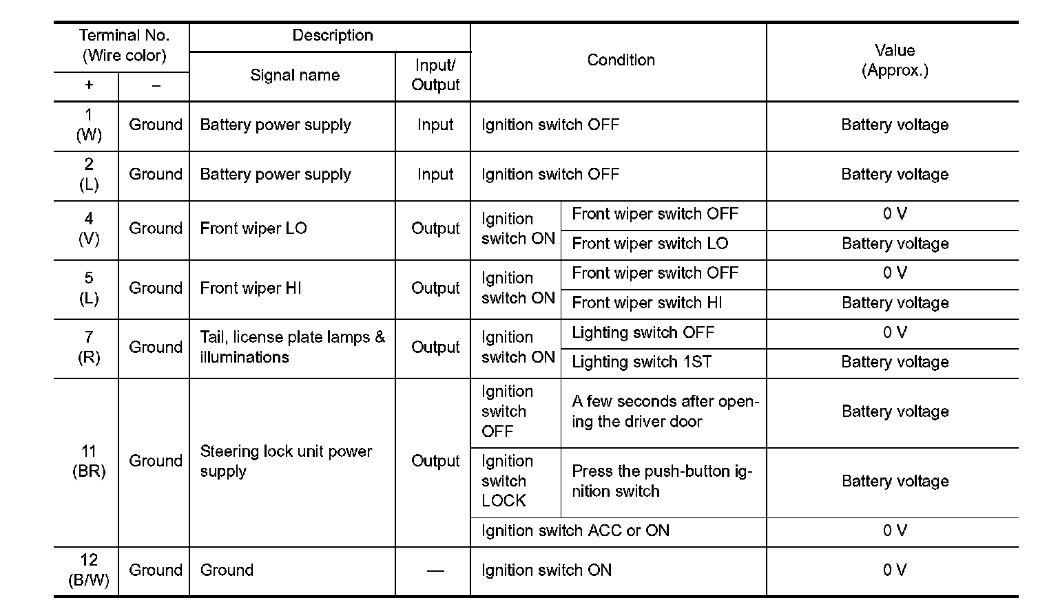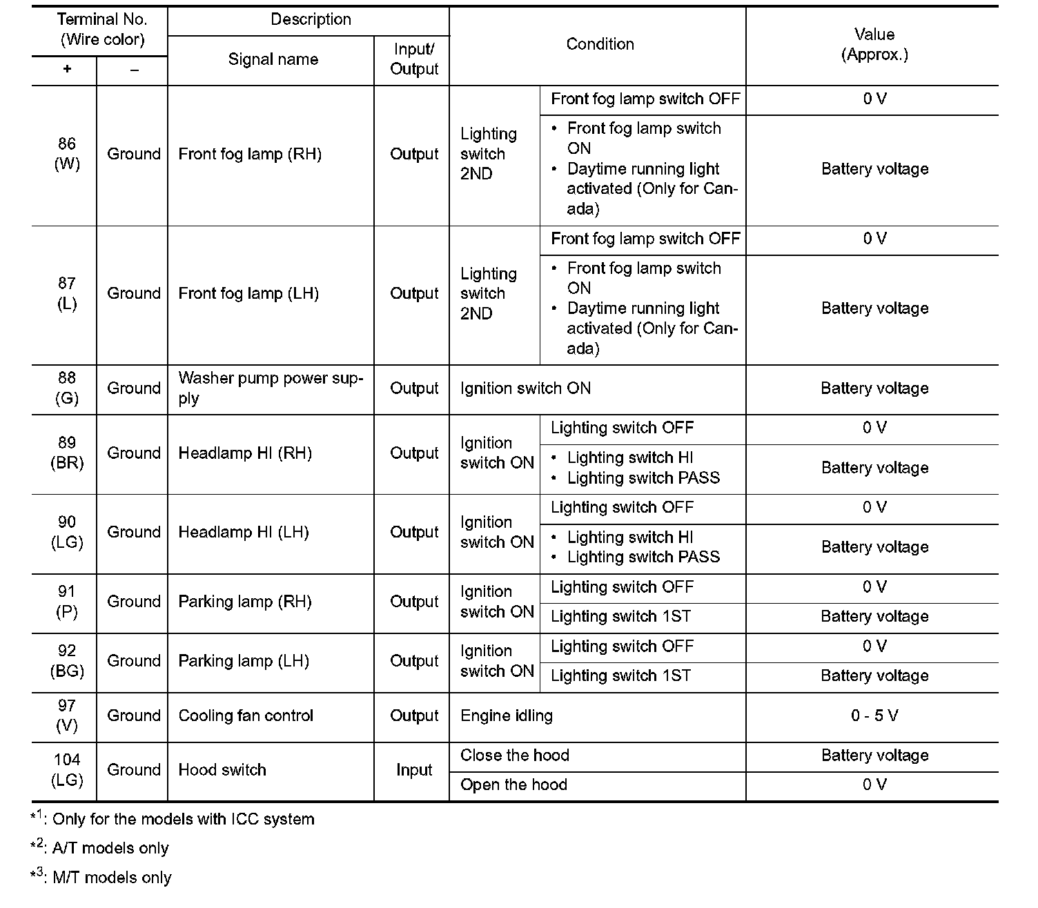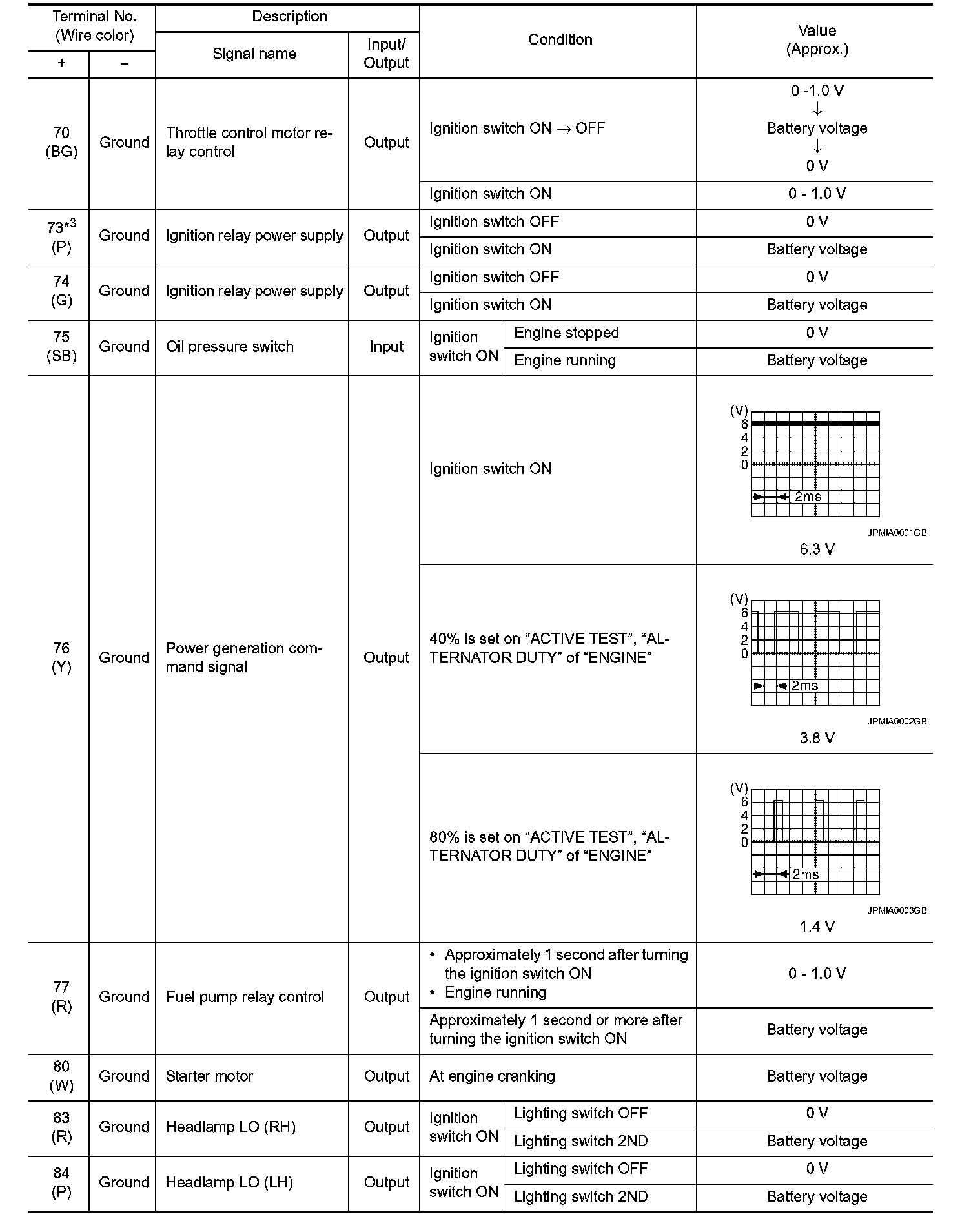 Pinout Values and Diagnostic Parameters