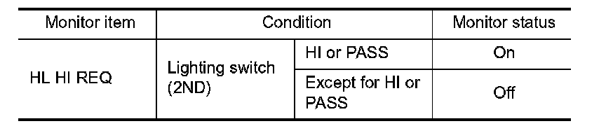 2.CHECK HEADLAMP (HI) REQUEST SIGNAL INPUT