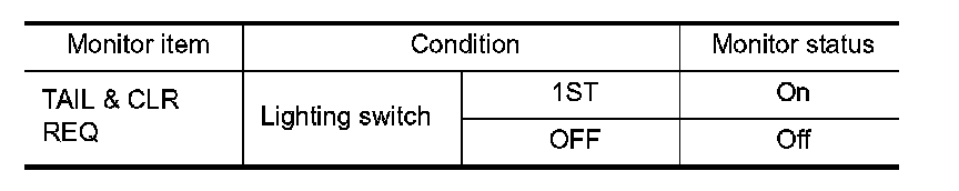 1. Select "TAIL & CLR REQ" of IPDM E/R data monitor item.