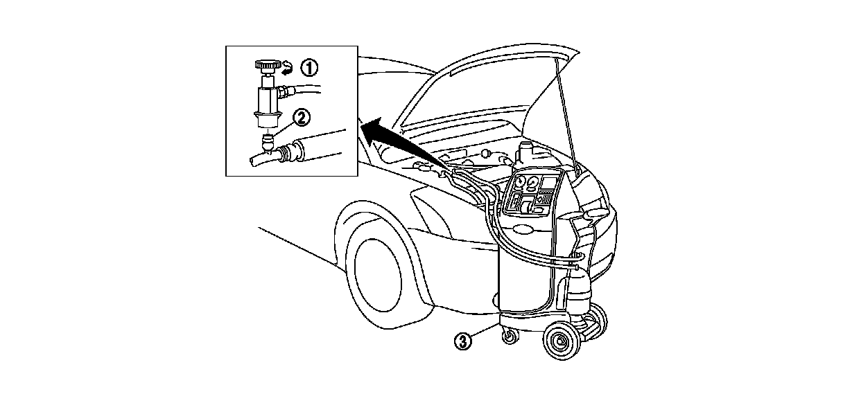 1. Disconnect recovery/recycling recharging equipment or manifold gauge set (SST: J-39183).