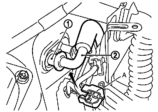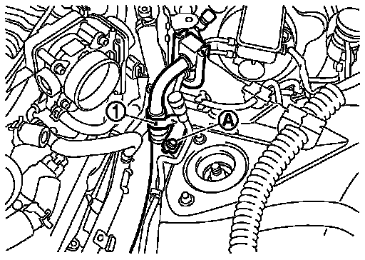 5. Remove mounting bolt (A) from low-pressure flexible hose bracket (1).
