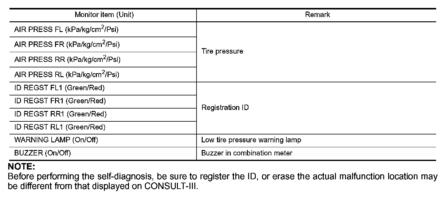 AIR PRESSURE MONITOR : CONSULT-III Function (BCM - AIR PRESSURE MONITOR)