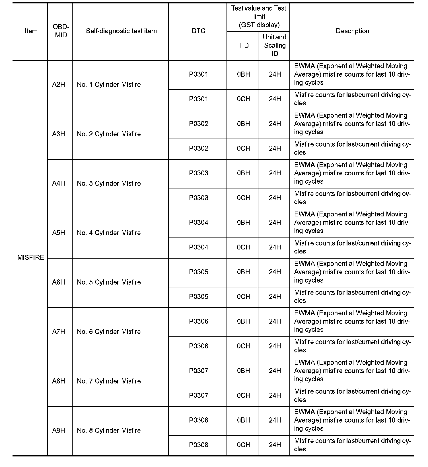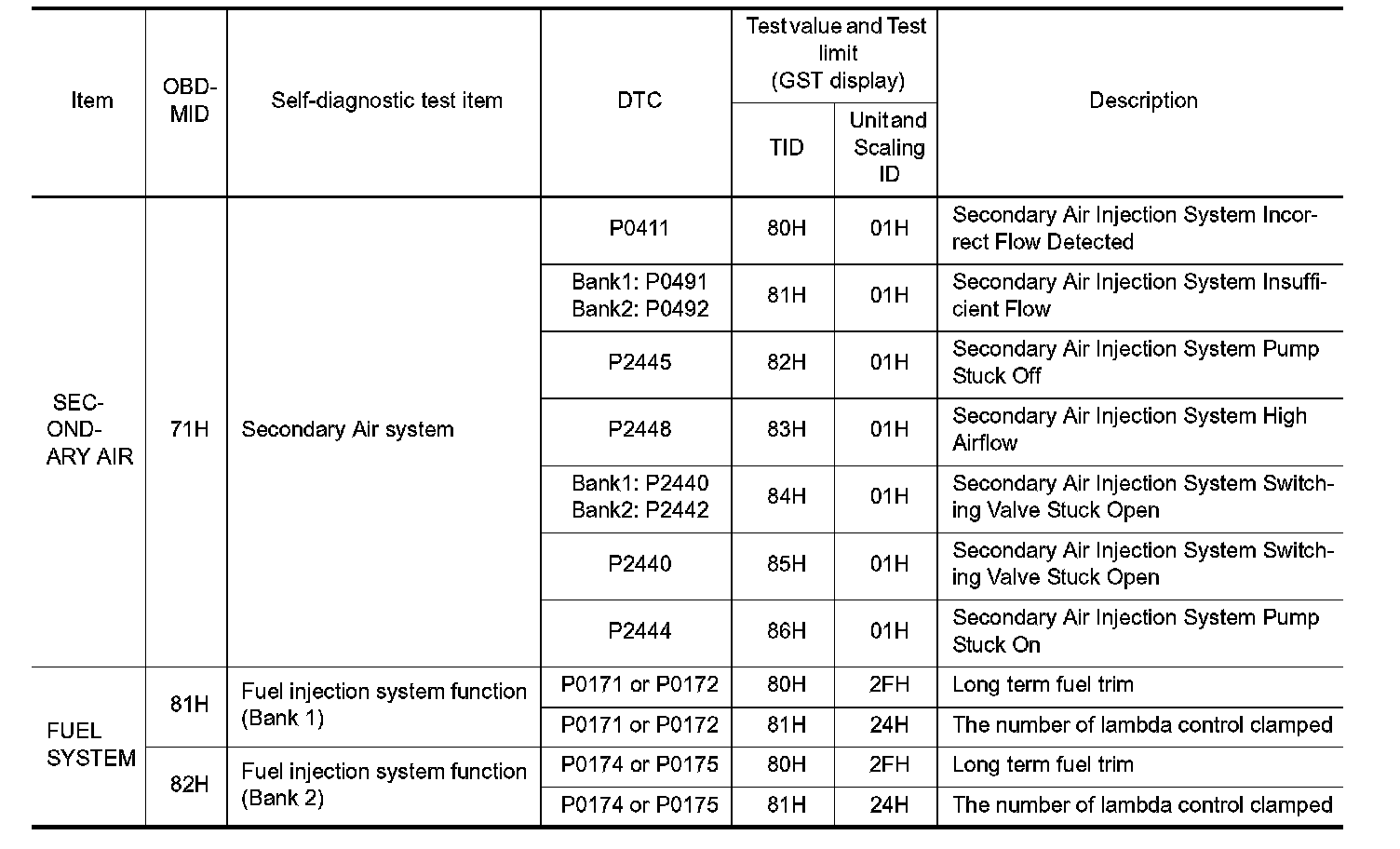 These data (test value and test limit) are specified by On Board Monitor ID (OBDMID), Test ID (TID), Unit and