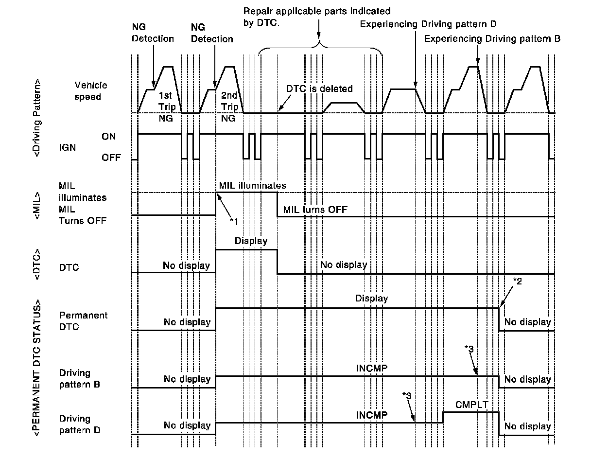 - If self-diagnosis results are erased during the trip of driving pattern B or D, an experience of driving pattern B and D during the same trip is not counted up.