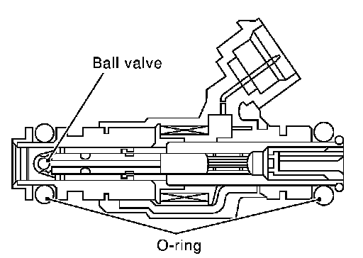 The fuel injector is a small, precise solenoid valve. When the ECM supplies a ground to the fuel injector circuit, the coil in the fuel injector is energized. The energized coil pulls the ball valve back and allows fuel to flow through the fuel injector into the intake manifold.