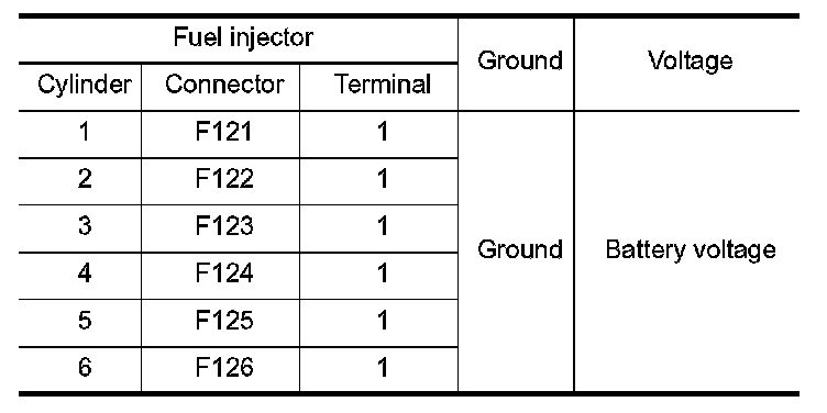 3. Check the continuity between fuel injector harness connector and ECM harness connector.