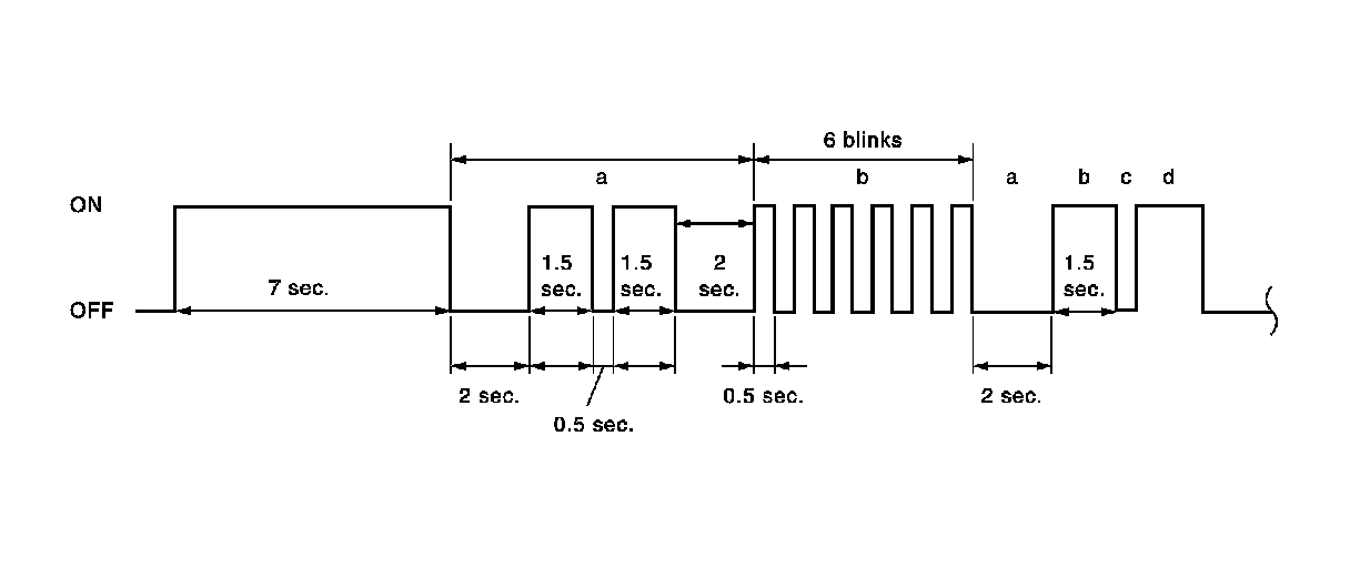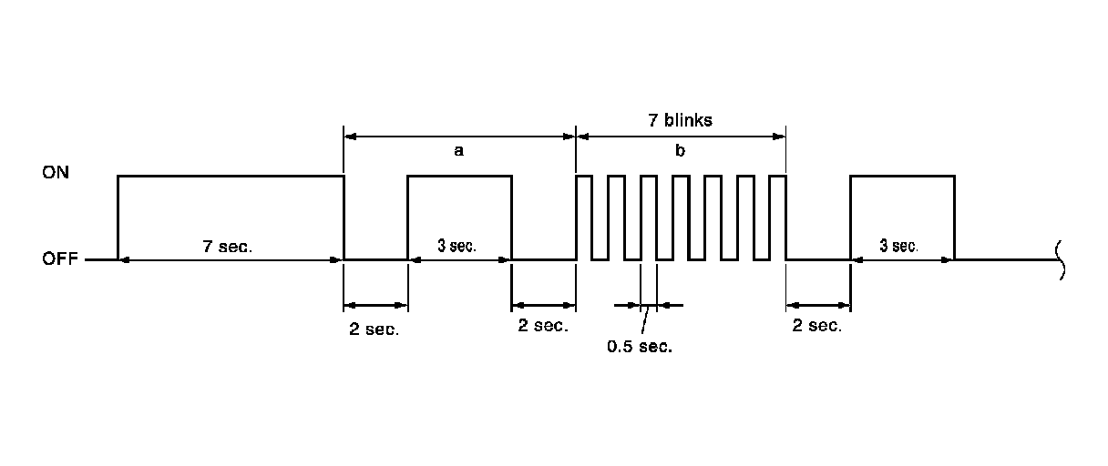 b: Seven 0.5-second blinks indicate that the air bag diagnosis sensor unit circuit is malfunctioning.
