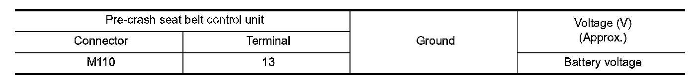 3. Check voltage between harness pre-crash seat belt control unit connector and ground.