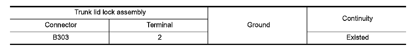 Check continuity between trunk lid lock assembly harness connector and ground.