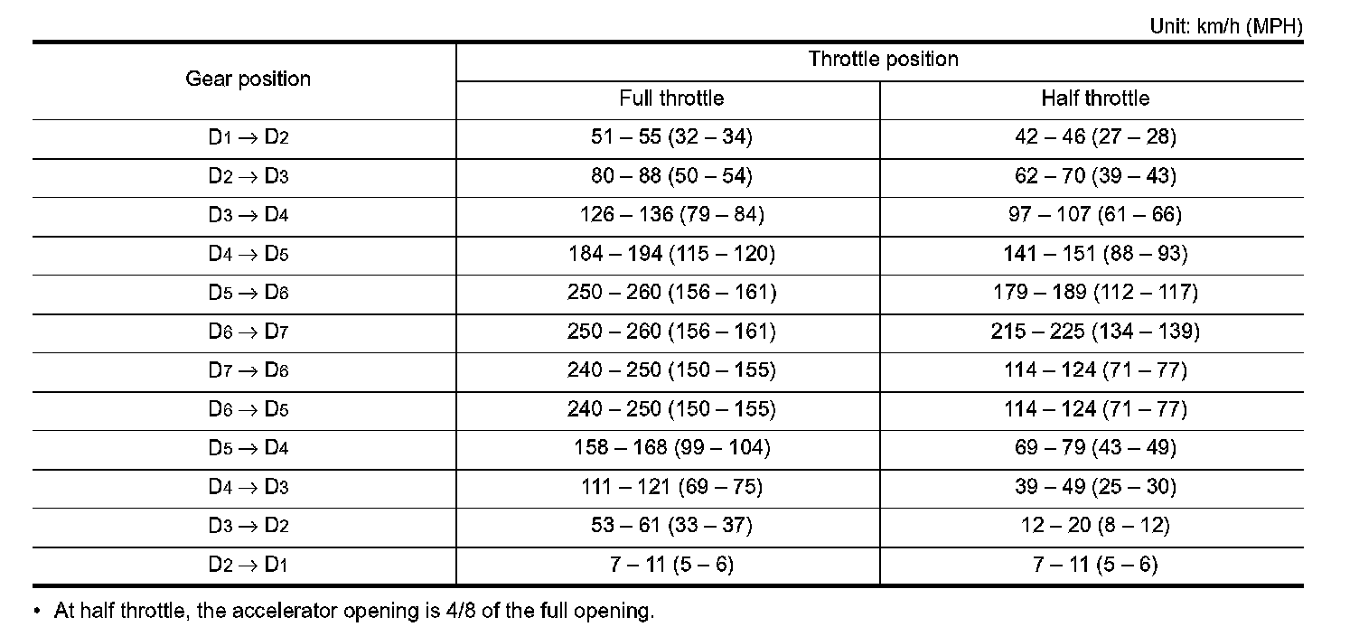Vehicle Speed at Which Gear Shifting Occurs
