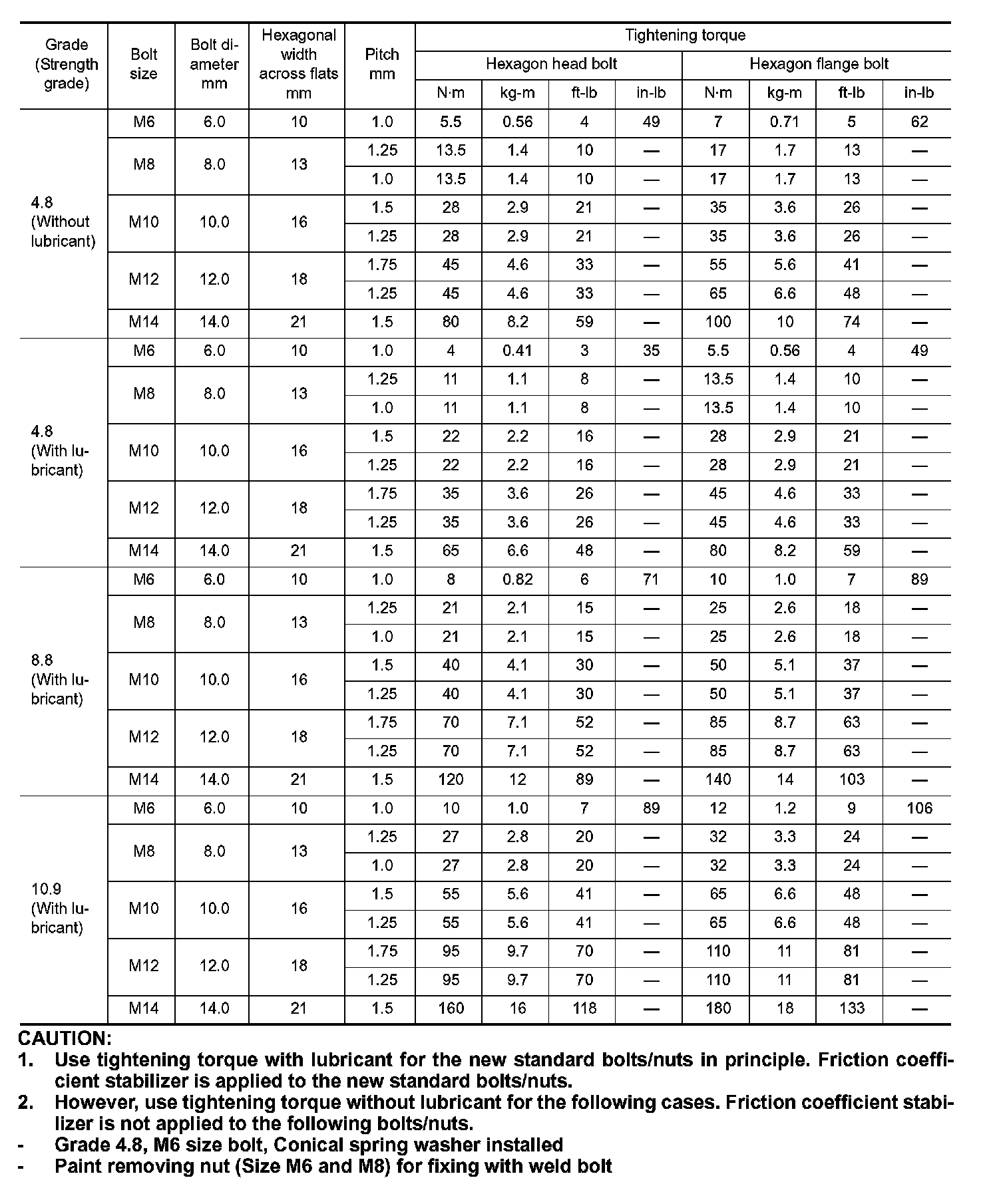 - The bolts/nuts in these tables have a strength (discrimination) number/symbol assigned to the head or the like. As to the relation between the strength grade in these tables and the strength (discrimination) number/symbol, refer to "DISCRIMINATION OF BOLTS AND NUTS".