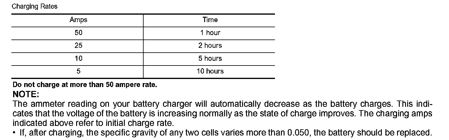 A sulphated battery may sometimes be brought back into service by means of a long, slow charge, 12 hours or more, followed by a battery capacity test.