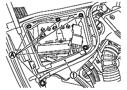 2. Remove the clips (A), and remove hoodledge cover (RH) (1).