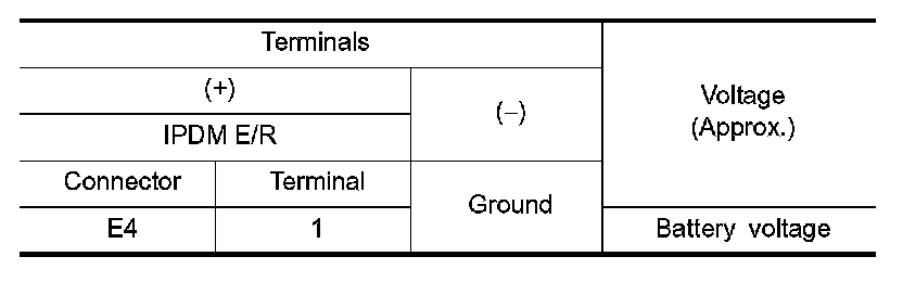 3. Check voltage between IPDM E/R harness connector and the ground.