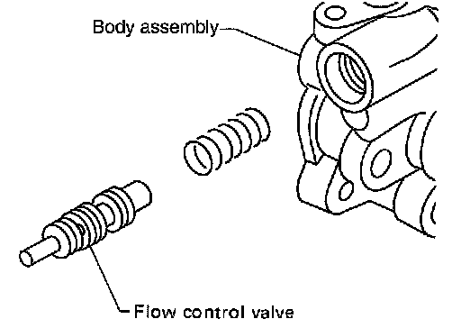 9. Remove connector bolt and O-ring, then pull out flow control valve and spring from body assembly.