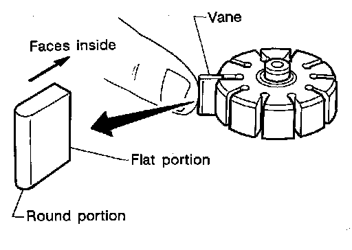 7. Install vane to rotor so that arc of vane faces cam ring side.
