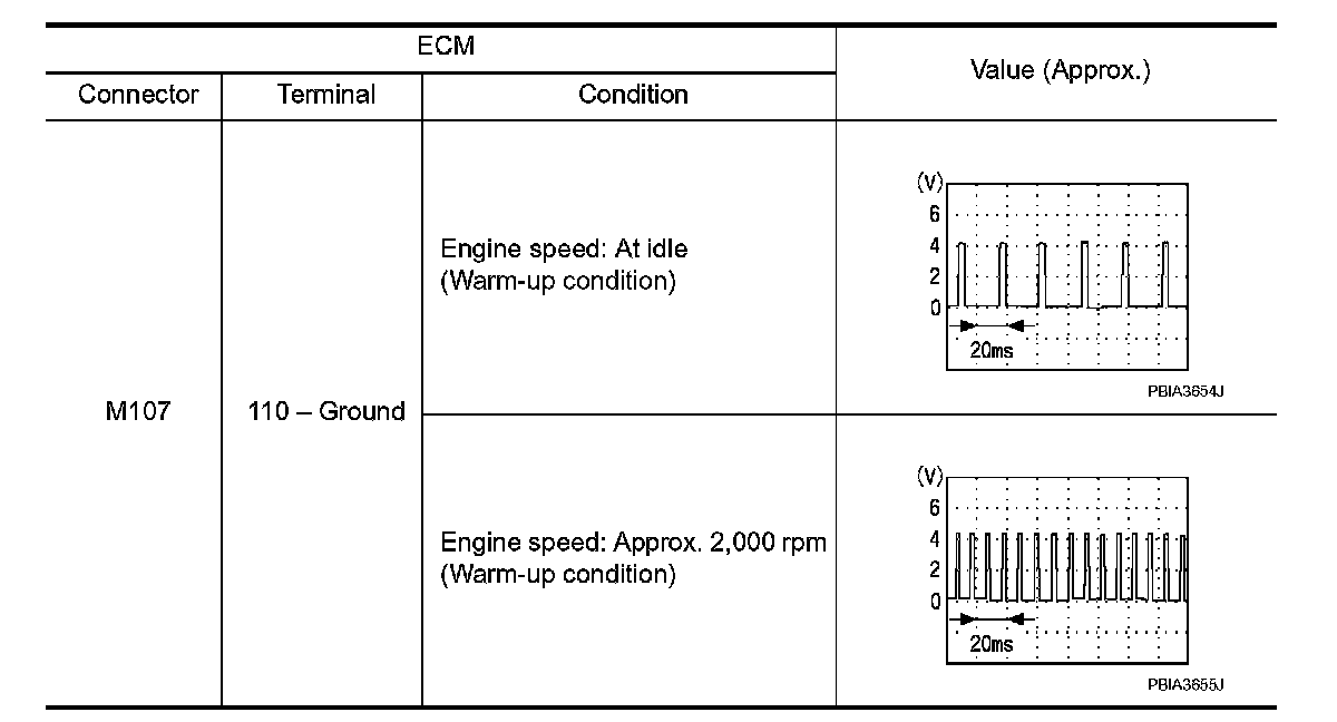 3. Check the signal between ECM harness connector and ground with oscilloscope.