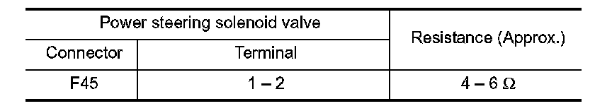 3. Check the resistance between power steering solenoid valve connector terminals.