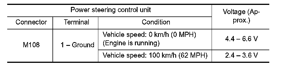 - Check the power steering control unit pin terminals for damage or loose connection with harness connector.