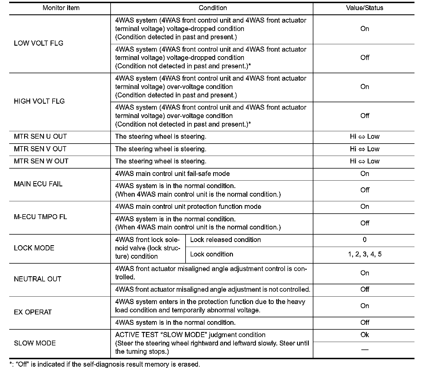 Pinout Values and Diagnostic Parameters