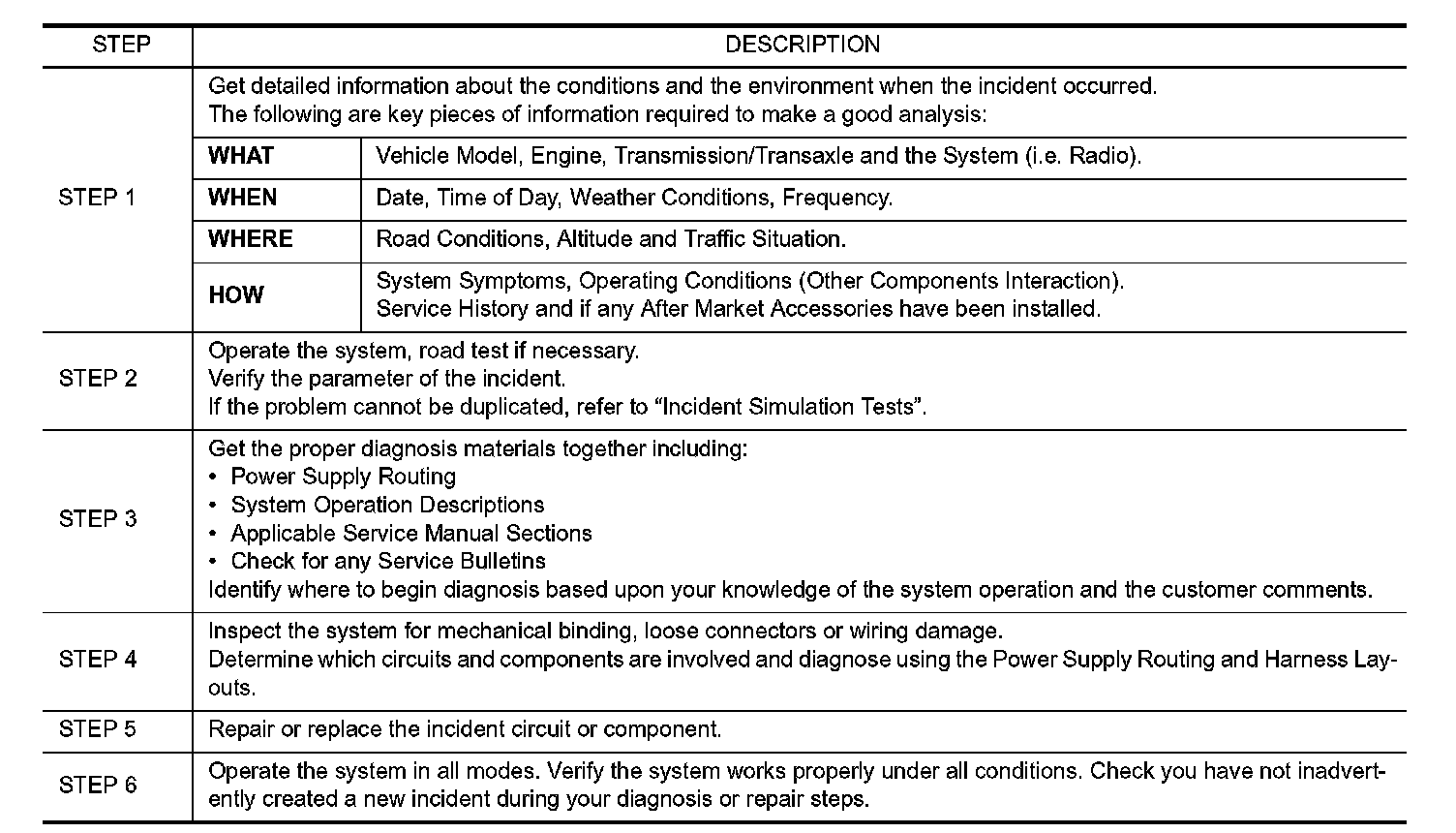 SERVICE INFORMATION FOR ELECTRICAL INCIDENT