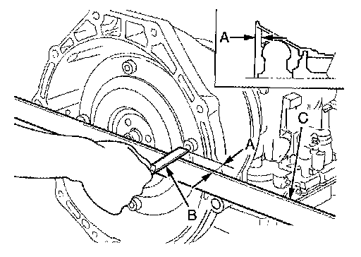 - When installing A/T assembly to the engine, be sure to check dimension "A" to ensure it is within the reference value limit.
