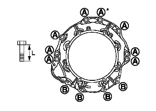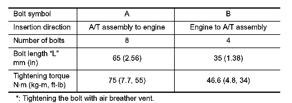 - When installing A/T assembly to the engine, attach the fixing bolts in accordance with the following standard.