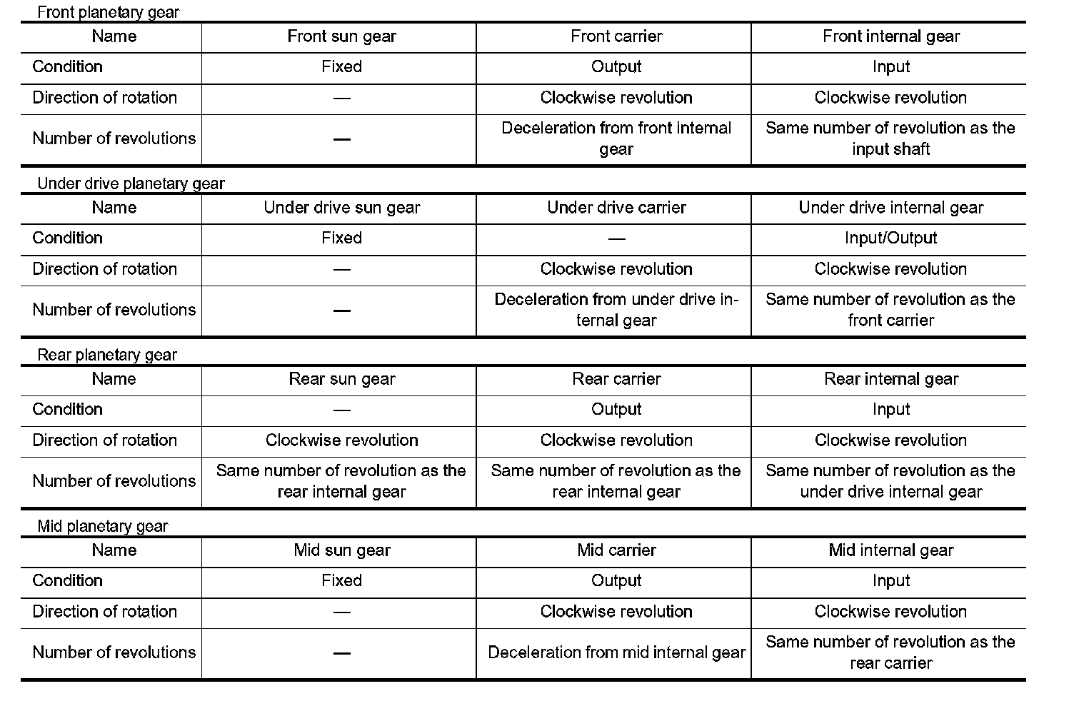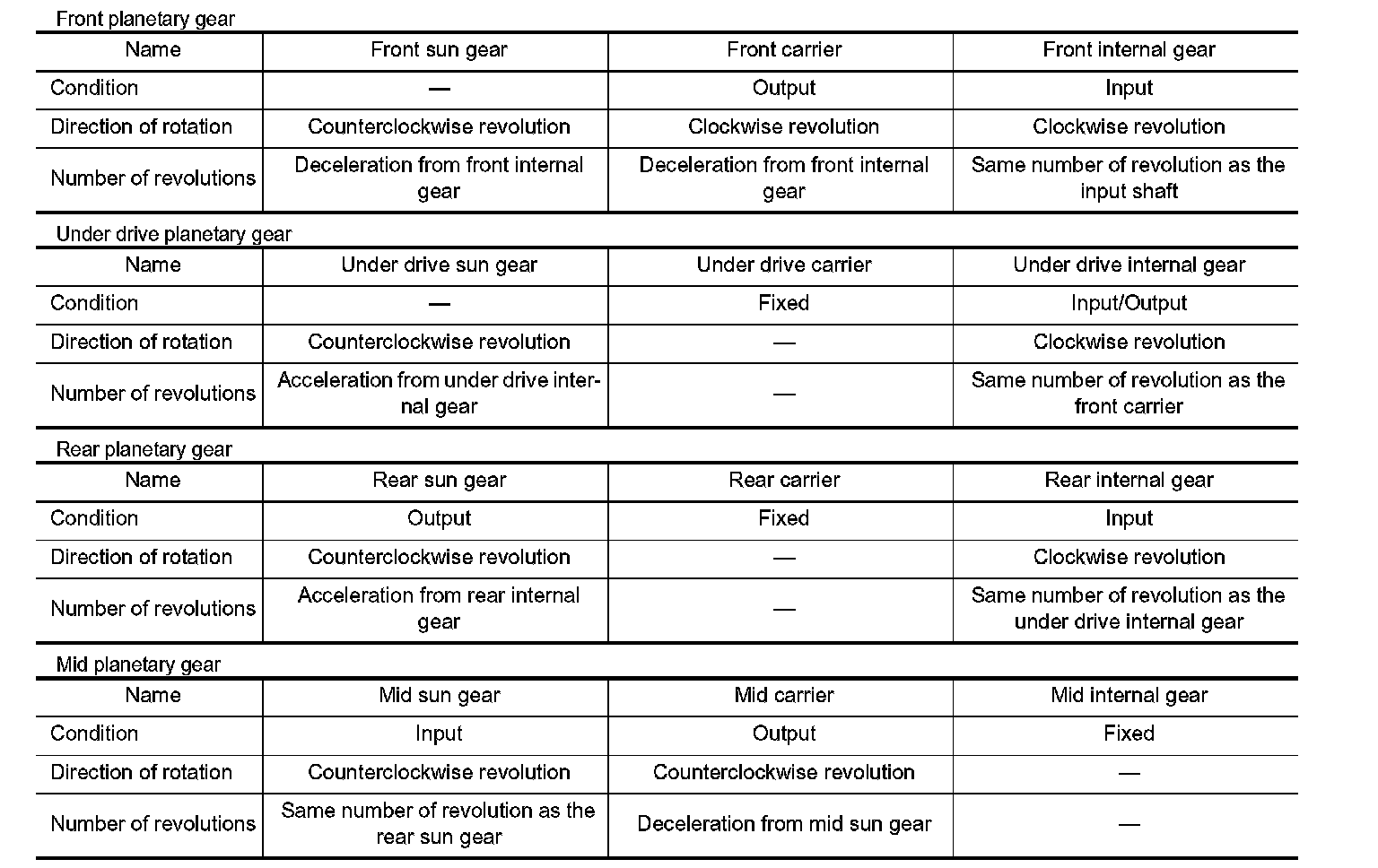 - The rear carrier and the mid internal gear are fixed by the reverse brake.