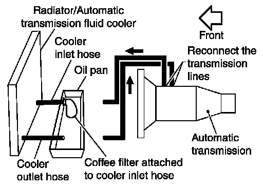 Debris, if present, may build up as ATF enters the cooler inlet. It will be necessary to back flush the cooler through the cooler outlet in order to flush out any built up debris.