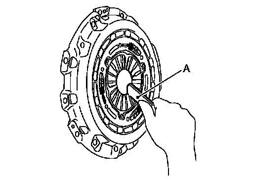 - Measure the depth "A" to clutch disc facing rivet heads, using a calipers. If it exceeds the allowable wear limit, replace clutch disc and clutch cover as a set.