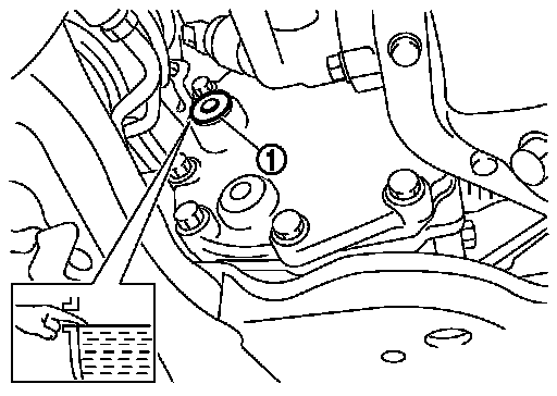 - Remove filler plug (1) and check oil level from filler plug mounting hole as shown in the figure.