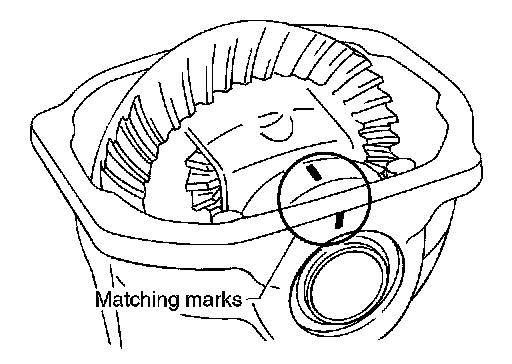 For matching marks, use paint. Never damage differential case and drive gear.