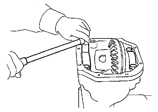 8. Lift differential case assembly out with a suitable tool.