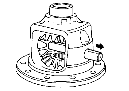 13. Remove lock pin of pinion mate shaft with a punch from drive gear side.