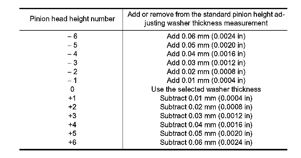 11. Correct the pinion height washer size by referring to the "pinion head number".