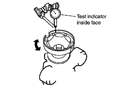 b. If the runout value is still outside of the limit after the phase has been changed, possible cause will be an assembly malfunction of drive pinion and pinion bearing and malfunction of pinion bearing. Check for these items and repair if necessary.