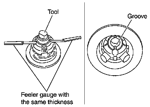 - To prevent side gear from tilting, insert feeler gauges with the same thickness from both sides.