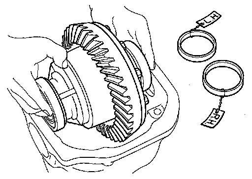 1. Install side gear thrust washer with the same thickness as the ones installed prior to disassembly or reinstall the old ones on the side gear.