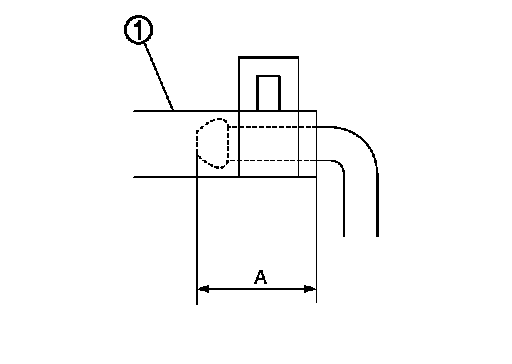 - Install the breather hose (1) to breather connector until dimension