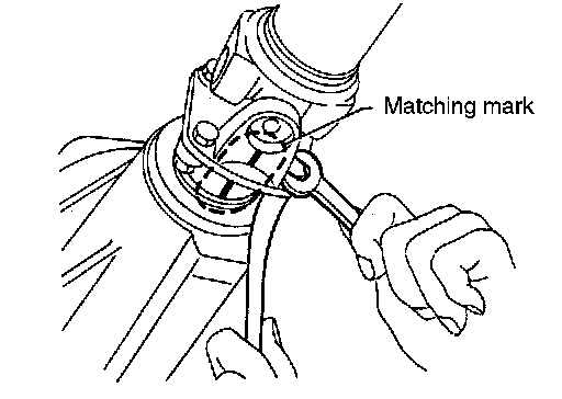 For matching marks, use paint. Never damage propeller shaft flange yoke and final drive companion flange.