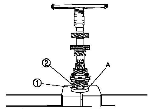 d. Install 3rd-4th synchronizer hub assembly (1) to counter shaft with a pressing machine using the inserter (A) [SST: