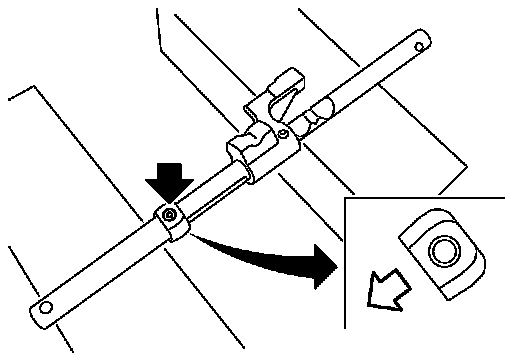 - Assemble retaining pin from the direction shown by the arrow in the figure until it becomes flush with the end surface of low/high control lever.
